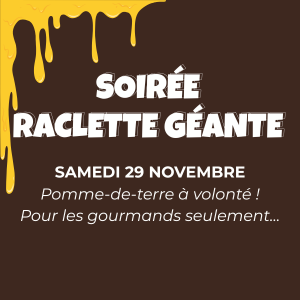 Viens te régaler autour d’une raclette géante avec pommes de terre à volonté, charcuterie généreuse et fromage coulant à souhait !