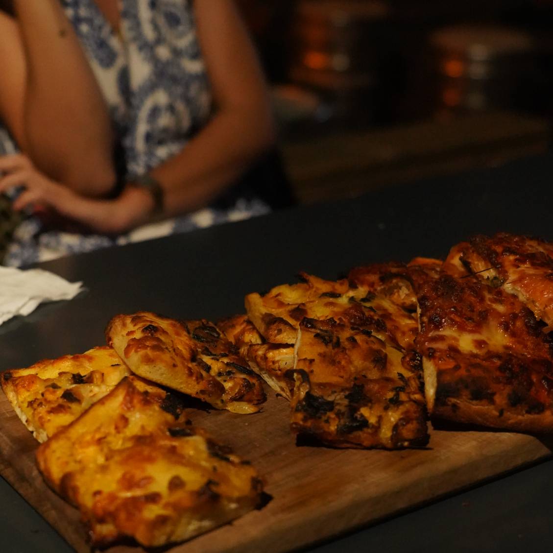 Salade verte, tomates confites, jambon cru, burratina, pesto, foccacia